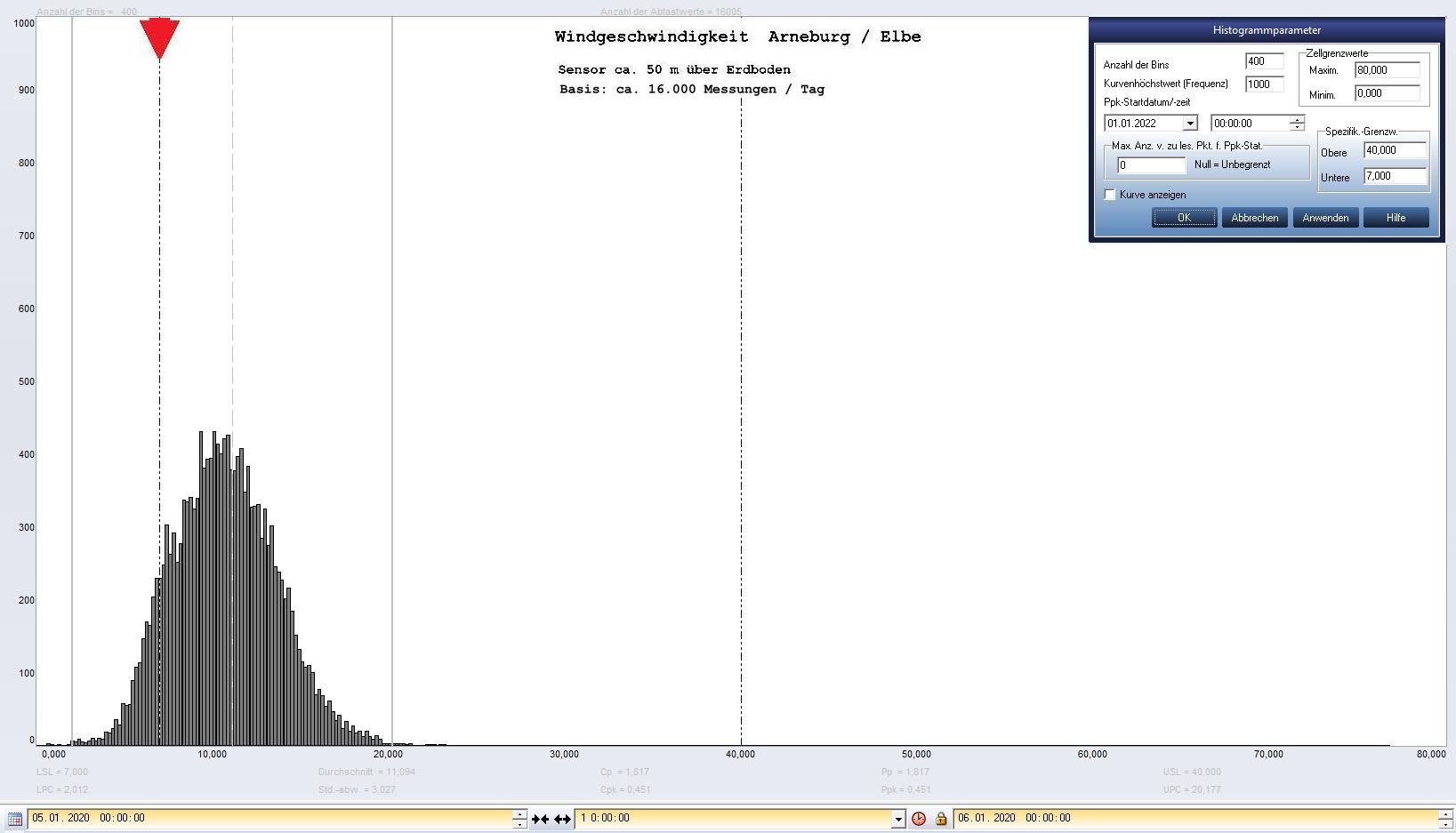 Arneburg Tages-Histogramm Winddaten, 05.01.2020