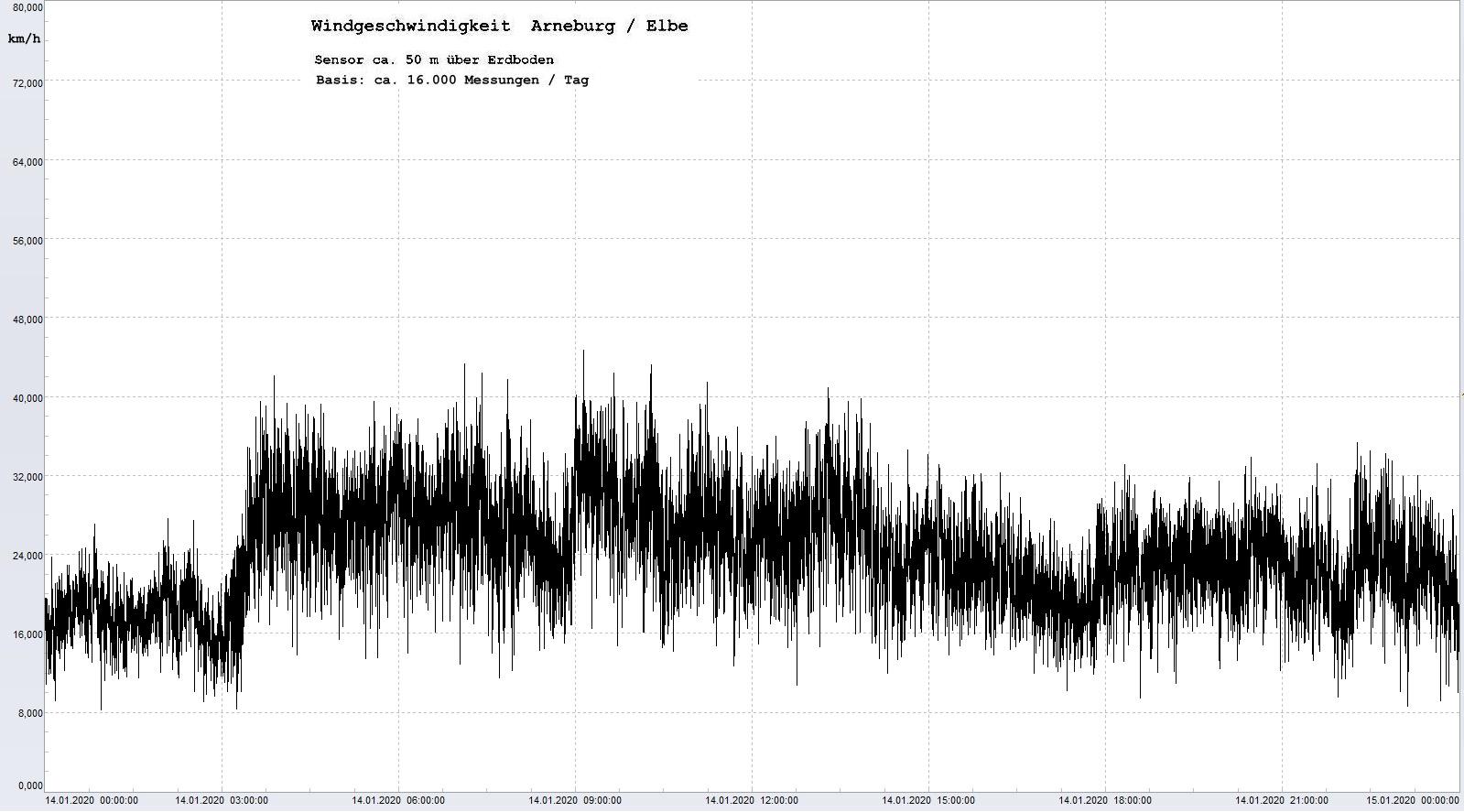 Arneburg Tages-Histogramm Winddaten, 14.01.2020