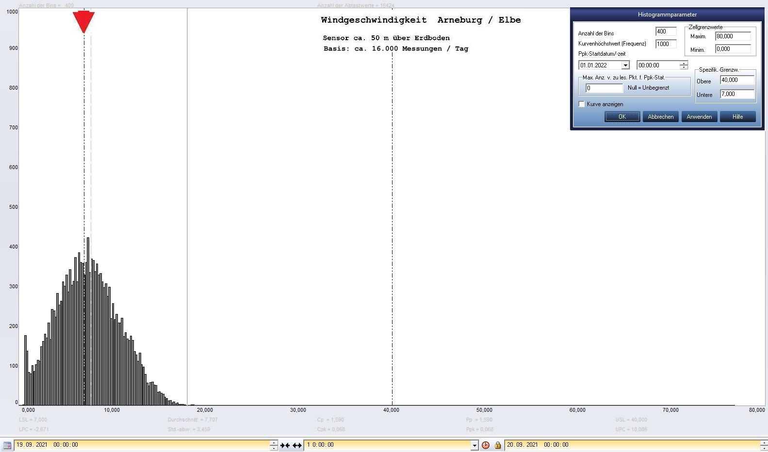 Arneburg Tages-Histogramm Winddaten, 19.09.2021