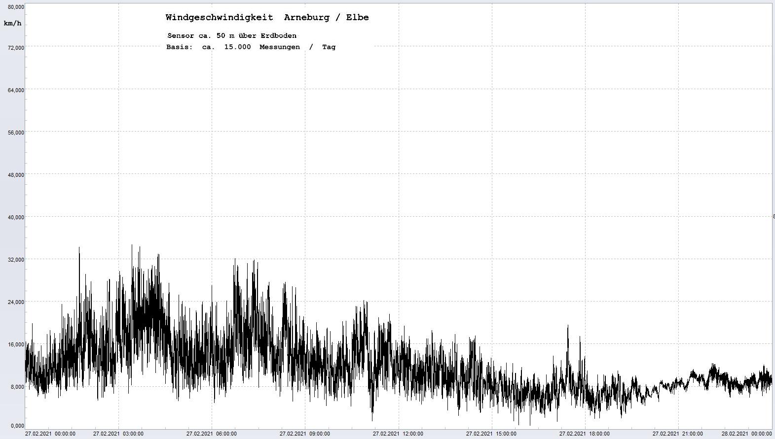 Arneburg Tages-Histogramm Winddaten, 27.02.2021