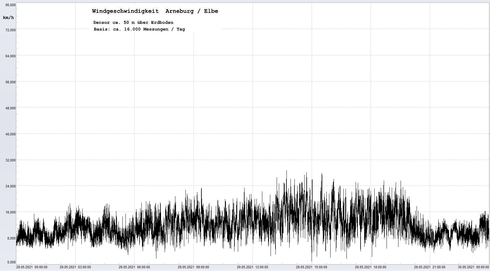 Arneburg Tages-Histogramm Winddaten, 29.05.2021