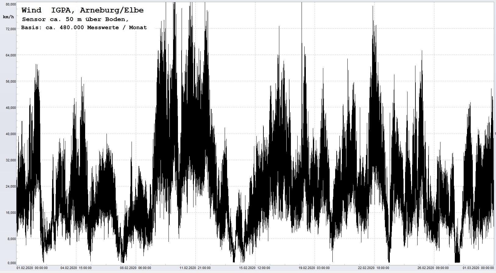 Arneburg Histogramm Winddaten Monat Februar 2020,
